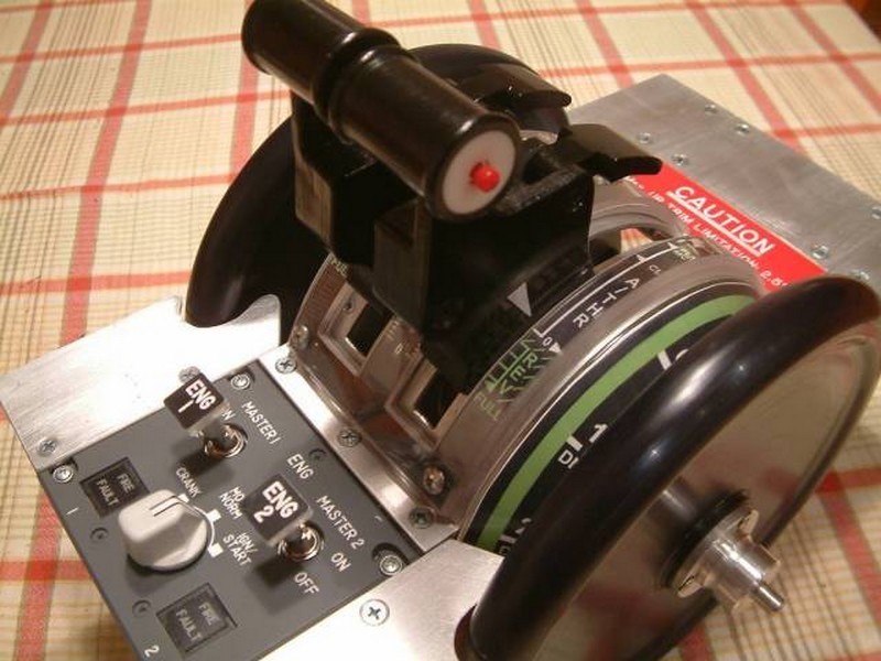 This is where it all started, the first commission for Aerosim Solutions. Michael D is building an A320 Airbus cockpit in Melbourne Australia. After seeing Gwyn's work at www.mycockpit.org, he asked Gwyn to build an A320 throttle quadrant and here you can see the result. Also the happy customer wrestling it from the proud designer!