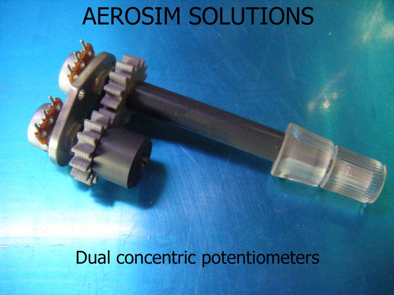 Custom dual concentric rotaries being used for potentiometers in this case but could also be used for rotary encoders. Pictured also are custom clear resin knobs fully backlight-able.